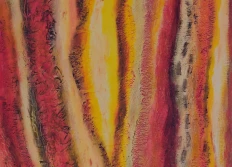 J’aime mélanger, fusionner, transformer la peinture avec différents matériaux et collages (du café, des coupures de journaux, des coquilles d’œuf, du sable, du carton …). Les possibilités de reliefs sont infinies et font ressortir les nuances de façon très variée et imprévisible. Mes représentations sont abstraites car j’aime jouer et m'exprimer avec les couleurs. Mes tableaux sont généralement très colorés, rythmés, vivants, remplis d’émotions de toute nature.